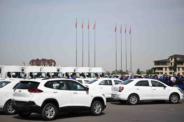 "Сегодня я передаю ключи от 19 бригадных машин и 35 служебных автомобилей, приобретенных за более чем 102 миллиона сомов", - сказал он.