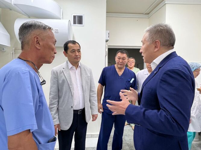 Министр здравоохранения Эркин Чечейбаев посетил Национальный хирургический центр (НХЦ), где ознакомился с проведенными ремонтными работами, оснащением и подготовительными мероприятиями к запуску операций по трансплантации печени.