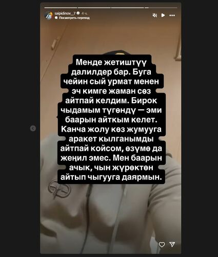 "Уважаемый Камчыбек Кыдыршаевич, прошу вас от всего сердца - возьмите это дело под личный контроль и поспособствуйте вынесению объективного и справедливого решения. Я готов сотрудничать со следствием, давать показания и раскрыть всю правду", - подчеркнул Мунарбек Сайпидинов.