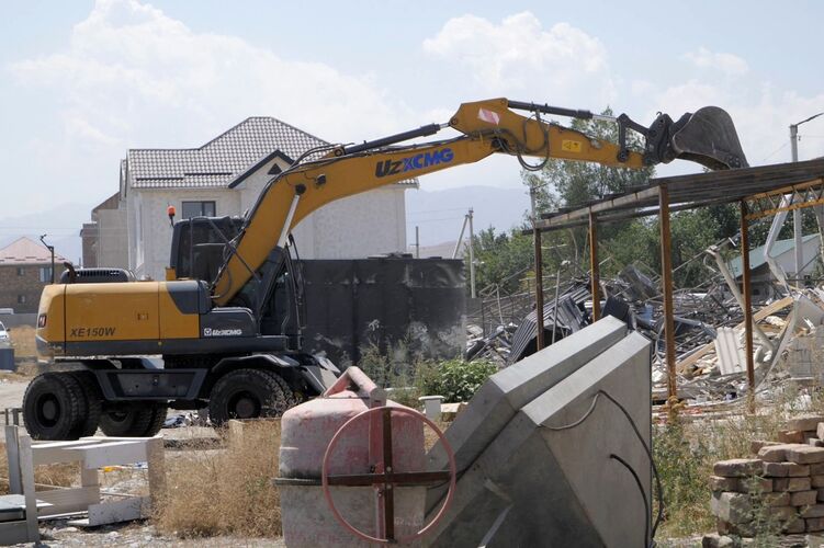 Официально: снос незаконных построек Аким Октябрьского района Жаныбек Орозалиев говорит, что снос идет законно. По его словам, эта территория - бывшие сельхозземли. После того как территорию включили в состав Бишкека, начали проверку. Всего здесь 1 тысяча 89 участков. Под амнистию попали только 149. Остальные - вне закона.