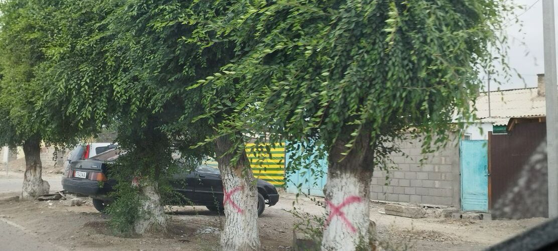 По их словам, на десятки зеленых насаждений с двух сторон нанесли красные кресты.