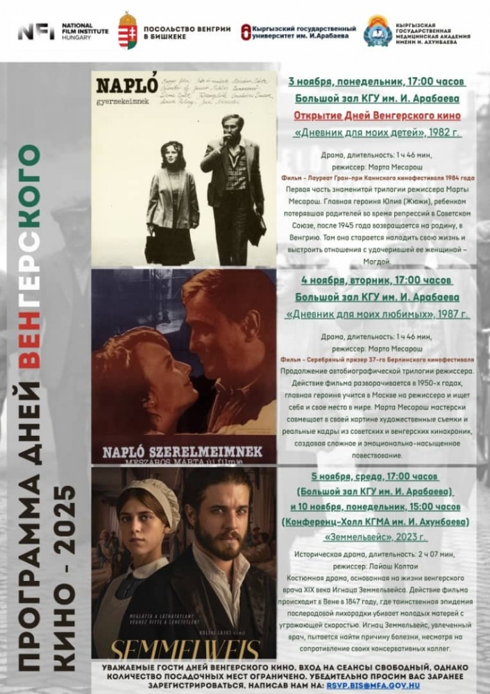 Дни венгерского кино проводились в прошлом году при полном аншлаге и вызвали у кыргызских зрителей заслуженную волну позитивных эмоций.