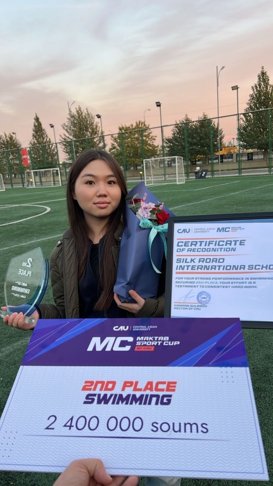 Silk Road International School - серебро в плавании благодаря Айсуне Алмазовой, 5-е место в настольном теннисе у Айбиике Кочкоровой.
