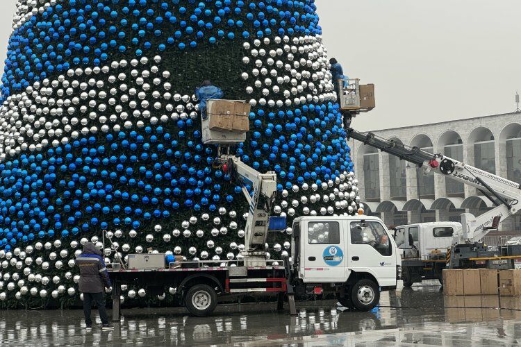 Сотрудники муниципалитета активно готовятся к официальному зажжению главного символа Нового года. По словам вице-мэра столицы Виктории Мозгачевой, 35-метровую красавицу на площади Ала-Тоо устанавливают не первый год.