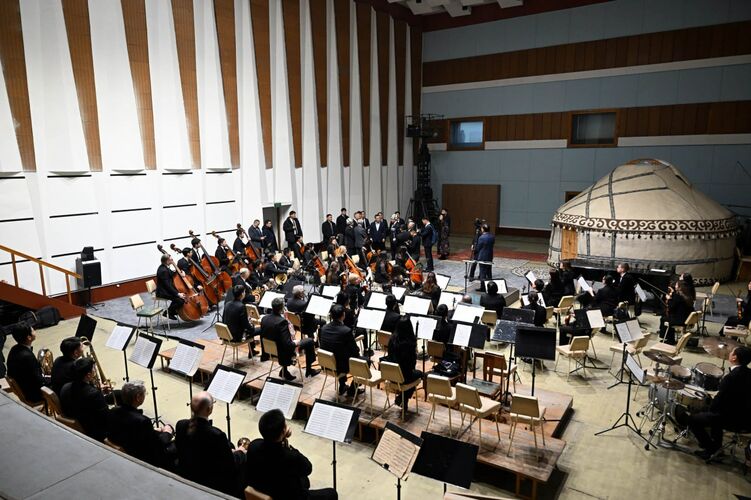 Глава государства ознакомился с обновленной инфраструктурой НТРК, осмотрел рабочие кабинеты, студии трансляции прямого эфира и звукозаписи, а также зал для записи классических мелодий, где прослушал выступление Государственного академического симфонического оркестра имени А. Джумахматова.