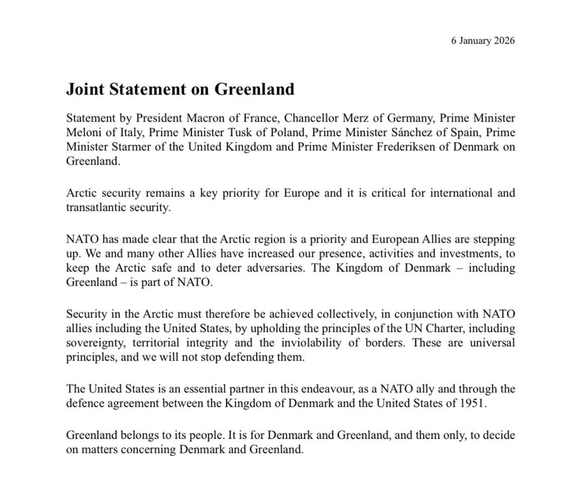 В заявлении подчеркивается, что арктическая безопасность остается ключевым приоритетом для Европы и критическим для международной и трансатлантической безопасности.