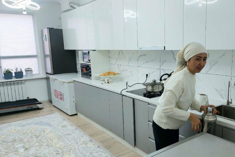 Счастье собственных стен Многодетная семья индивидуального предпринимателя Бахтияра Балтабаева въехала в трехкомнатную квартиру на первом этаже только три дня назад, но уже расставила часть мебели и обживается с большим удовольствием. Глава семейства рад, что школа в шаговой доступности и один ребенок уже ходит в нее.