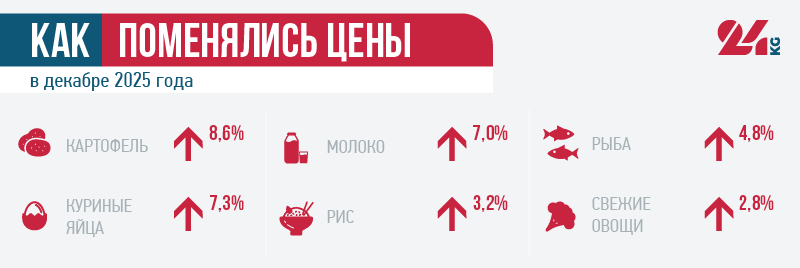 Потребительские цены и тарифы в декабре 2025-го по сравнению с ноябрем выросли во всех регионах республики. В Джалал-Абадской области существеннее всего - 2,1 процента.