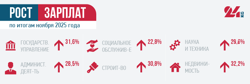 Как растет зарплата в Кыргызстане В январе - ноябре 2025 года (по сравнению с 11 месяцами 2024-го), по данным Нацстаткома, отмечено повышение на 19,1 процента среднемесячной номинальной начисленной зарплаты на предприятиях и в организациях всех видов экономической деятельности.