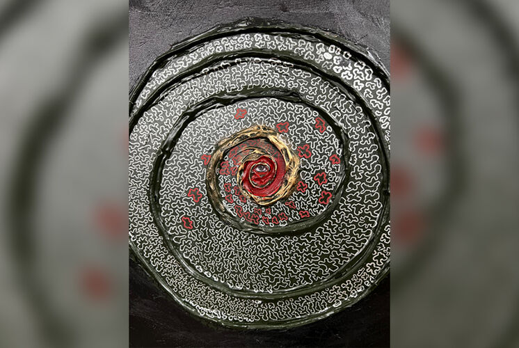 - Да, это одна из самых трудных моих работ. Я порезал холст в трех местах с мыслью о том, что предательство - это как сломанные руки: простить можно, но обнять уже невозможно. Три открытые раны в центре темной материи - это визуализация того, как травма разрушает базовую архитектуру доверия. Целостность уничтожена. Даже если сшить края, шрам останется навсегда, меняя геометрию близости. Я не хотел резать холст, но трижды возвращался к этому импульсу.