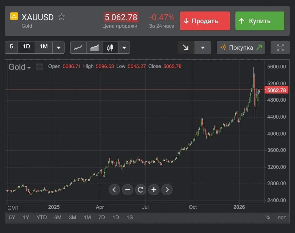 В начале 2026 года золото достигло рекордных уровней - выше 5500 долларов за унцию. Это почти в два раза выше, чем год назад. Если бы вы вложили 1000 долларов в этот актив в начале 2025 года, то ваша прибыль в долларах составила бы более 100%. Даже после незначительной коррекции к середине февраля 2026 года оно оставалось на высоких уровнях, отражая сохранение устойчивого спроса со стороны институциональных участников.