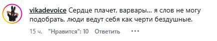 - "Сердце плачет... Варвары... Я слов не могу подобрать, люди ведут себя как черти бездушные".