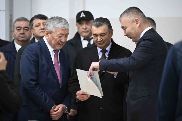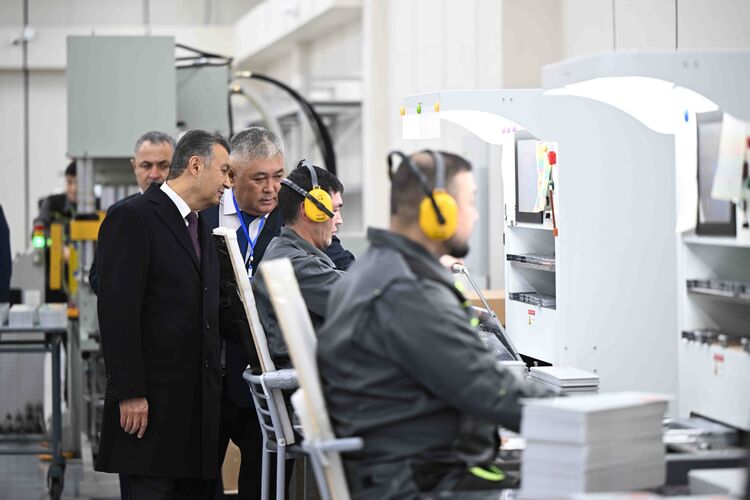В компании "Учкун" главы правительств посетили переплетный и офсетный цеха, где изготавливается печатная продукция. Делегации продемонстрировали процесс производства акцизных марок, документов государственного значения, специальных бланков и государственных регистрационных номерных знаков. Также представили оборудование для маркировки и контроля качества топлива.