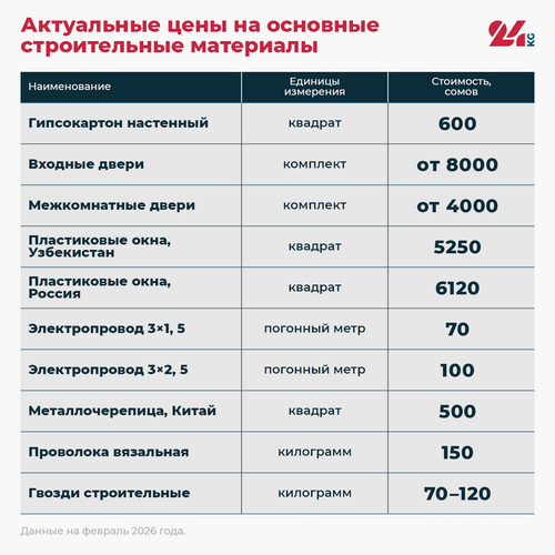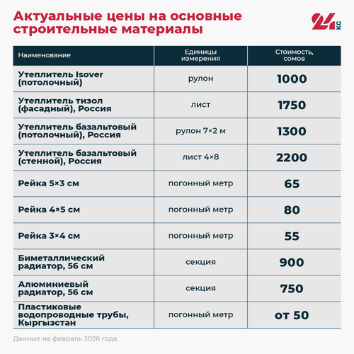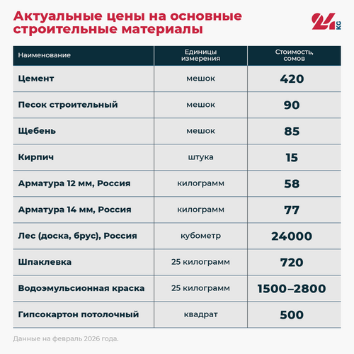 Журналист 24.kg изучил, сколько сегодня стоят стройматериалы в Кыргызстане, и выяснил, от чего зависят эти цены. Оказалось, что на стоимость влияют сезон, импортные поставки и развитие местного производства. Все это и формирует новую картину строительного рынка.