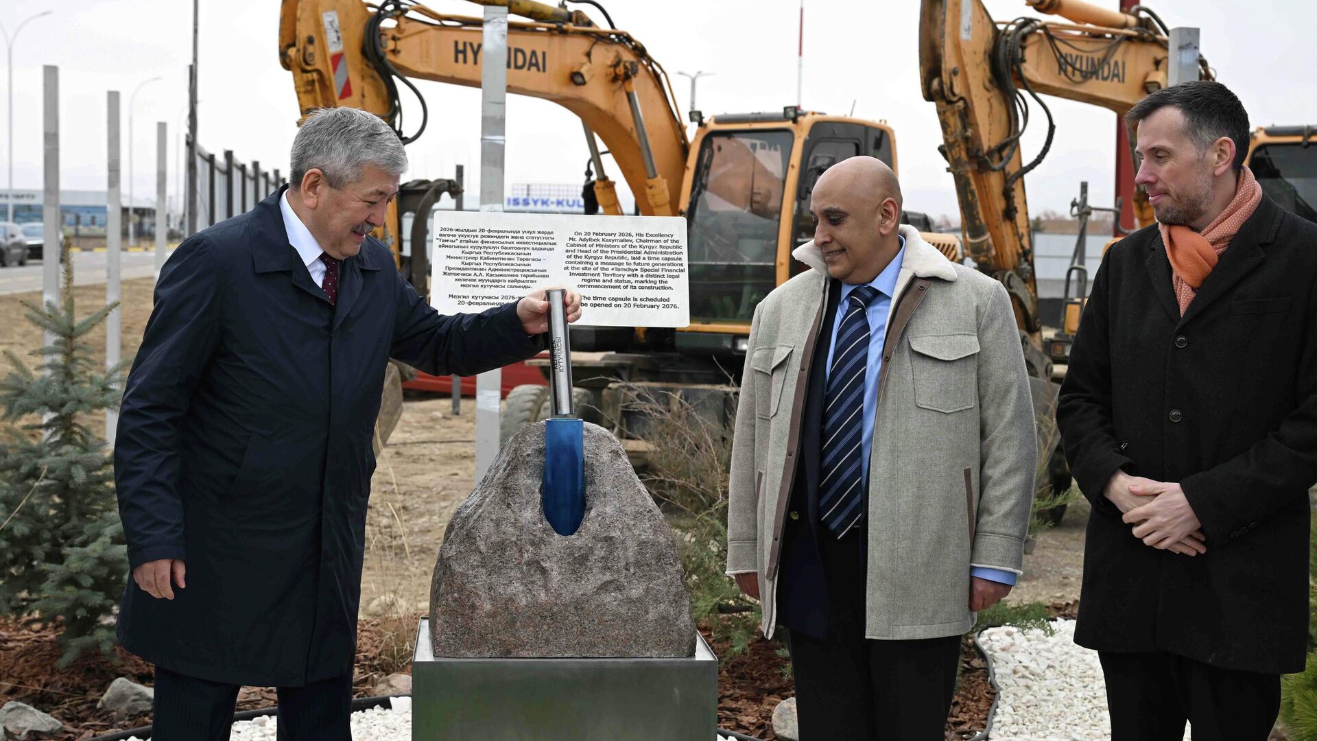 В Иссык-Кульском районе началось создание специальной финансово-инвестиционной территории (СФИТ) "Тамчы". Капсулу заложил глава кабмина Адылбек Касымалиев.