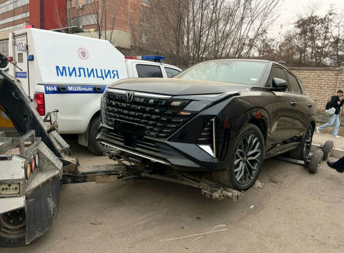 В Бишкеке на улице Курманжан Датки возле БЧК автомобиль сбил курьера на скутере