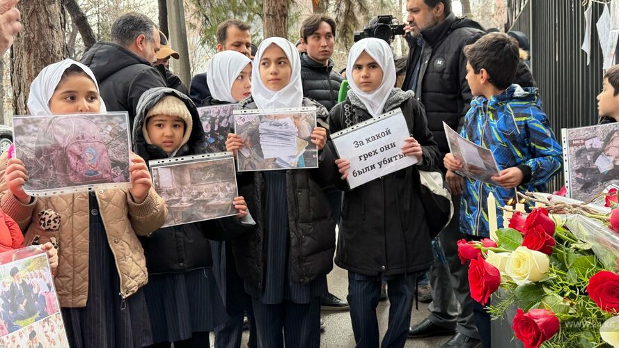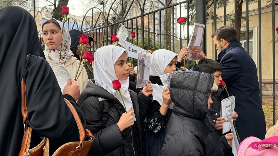 Жители Бишкека несут цветы к посольству Ирана — видео