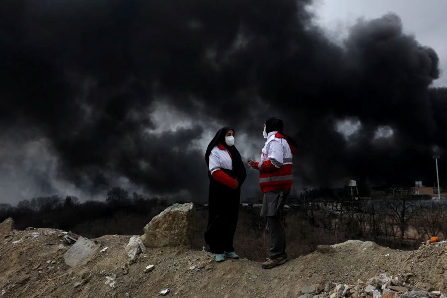 Взрывы на нефтехранилищах привели к выбросу в атмосферу большого количества опасных химических веществ - углеводородов, а также оксидов серы и азота, что может вызвать токсичные кислотные дожди, сообщил иранский Красный Полумесяц.