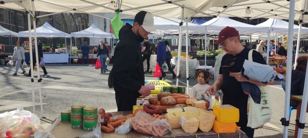 Солнечная весенняя погода привлекла жителей и гостей столицы на традиционную фермерскую ярмарку на Старой площади. С приходом тепла здесь заметно вырос спрос на свежие овощи, зелень и мясную продукцию.