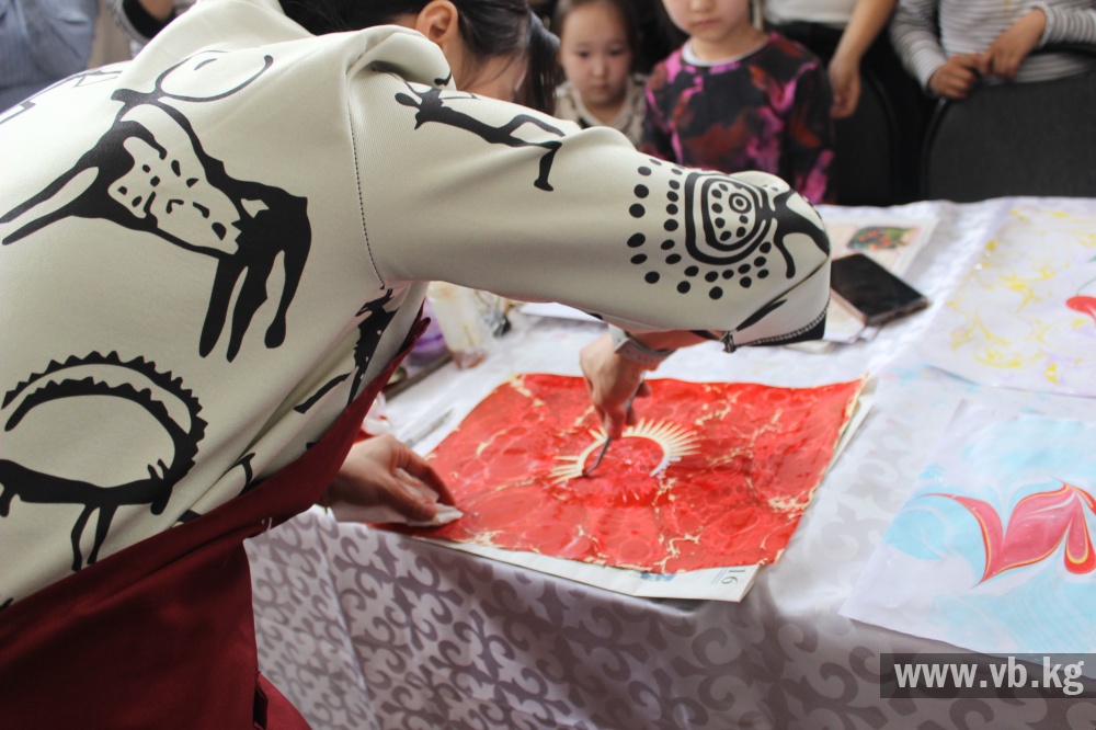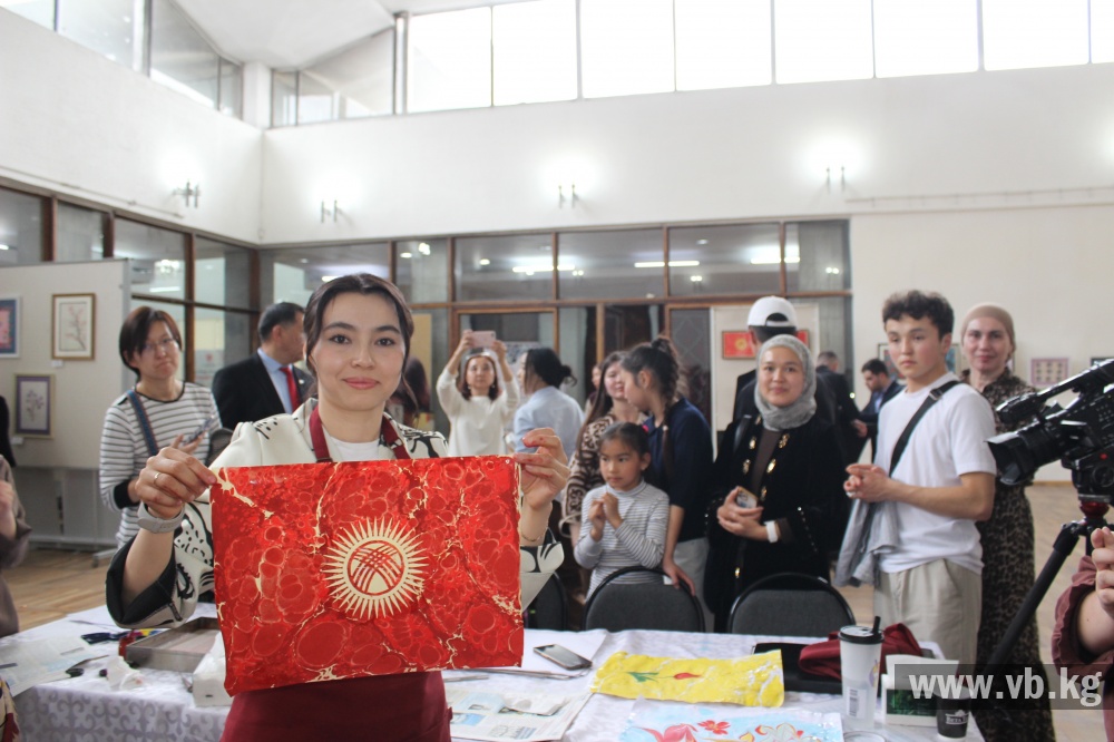 В программе выставки создание флагов Турции и Кыргызстана в технике эбру, а также изображение цветка Айгуль символа Баткенской области. Посетители могут наблюдать процесс создания работ и ближе познакомиться с этим уникальным искусством.