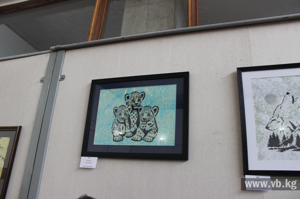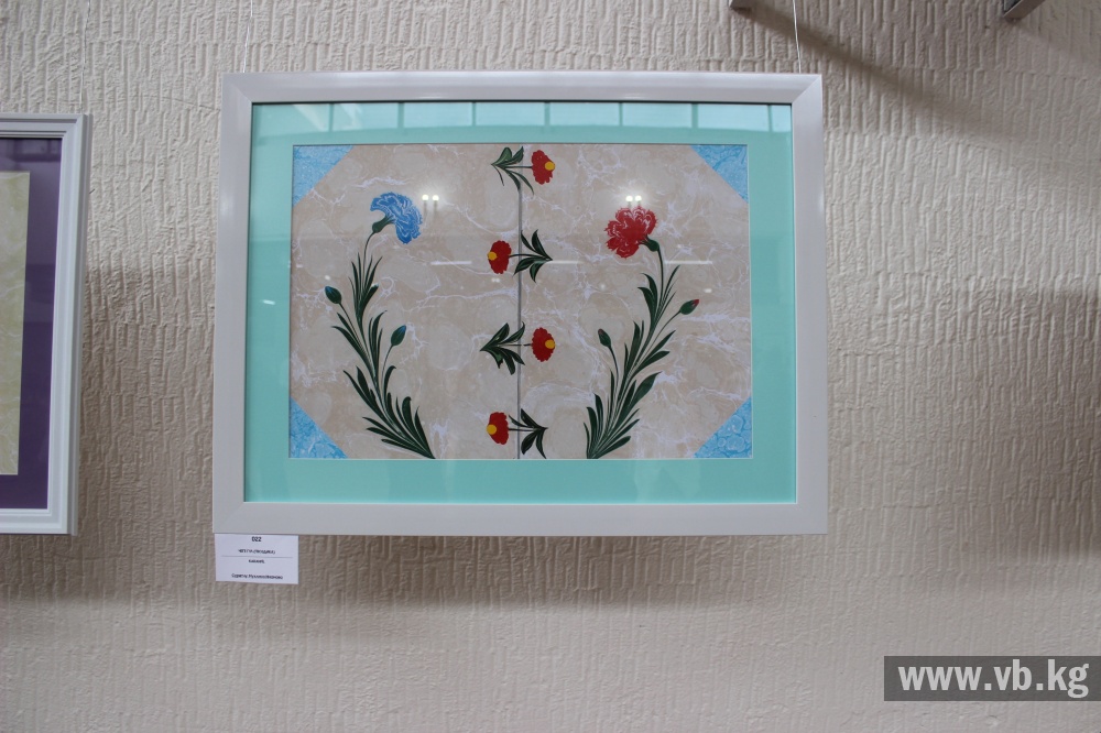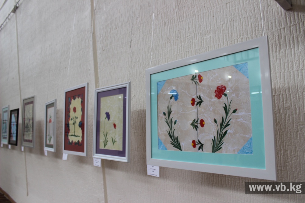 Свои работы на выставке представила и сама Мухлиса , продолжающая популяризацию эбру в Кыргызстане.