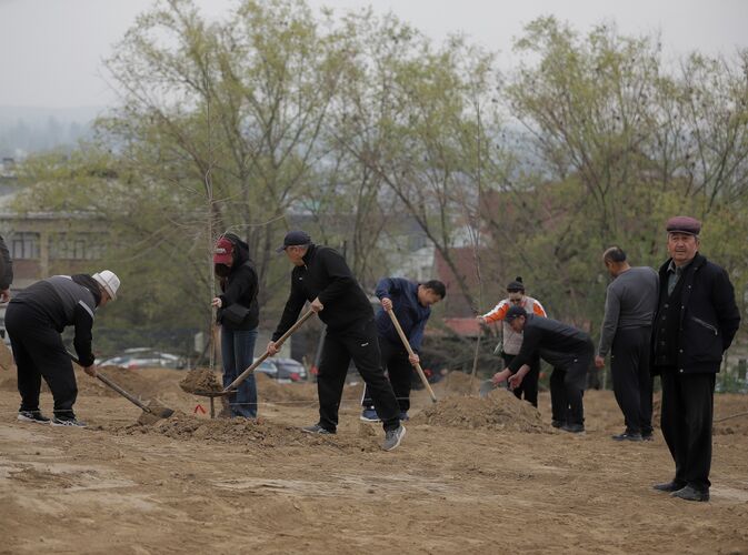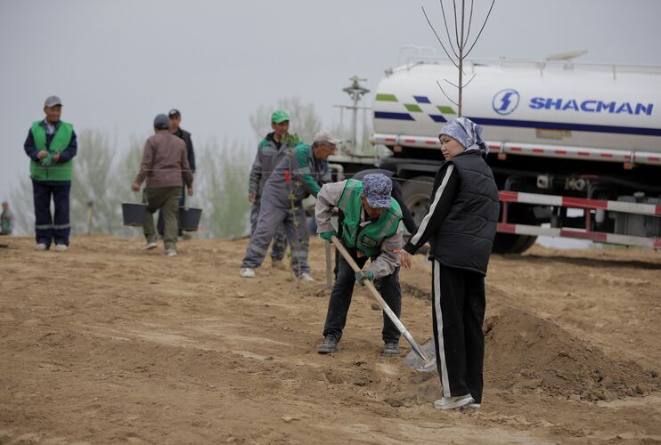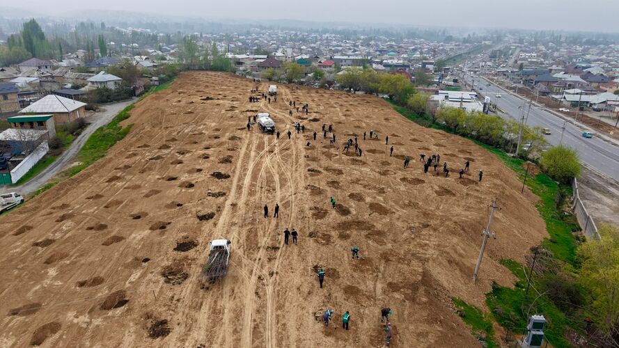 На кладбище "Учар" в городе Ош высадят более 600 саженцев
