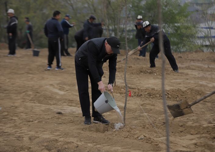 Еще 740 новых деревьев для Бишкека: мэр принял участие в массовой посадке