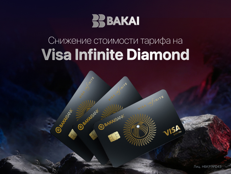 BAKAI объявляет о снижении стоимости выпуска премиальной карты Visa Infinite Diamond, делая один из самых статусных банковских продуктов более доступным для клиентов.