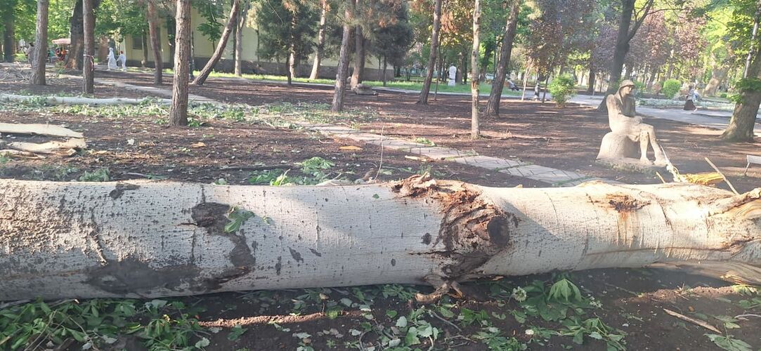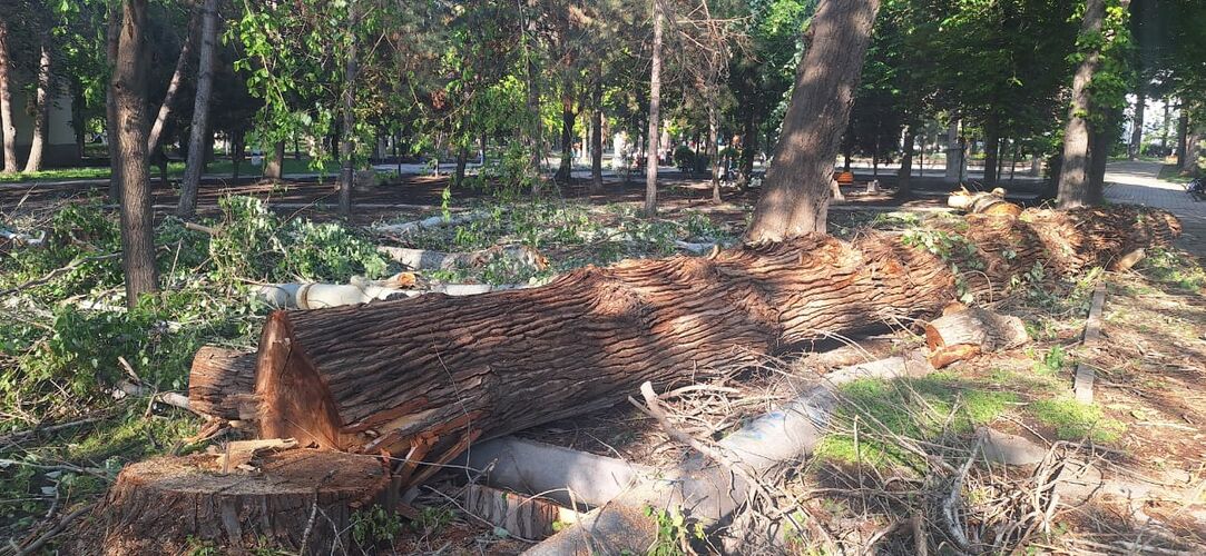 Реконструкция Дубового парка в Бишкеке началась с вырубки деревьев