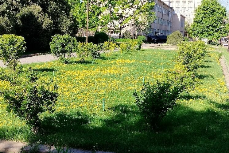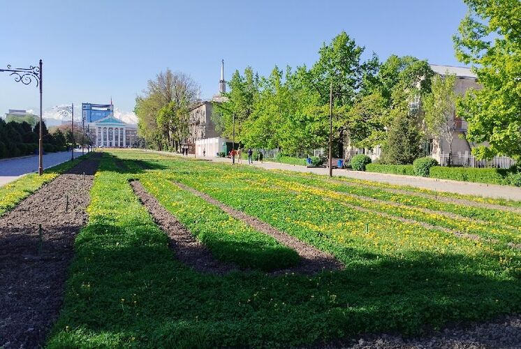 Тем временем центр Бишкека захватили одуванчики. После дождя 11 апреля они покрыли многие газоны желтым ковром.