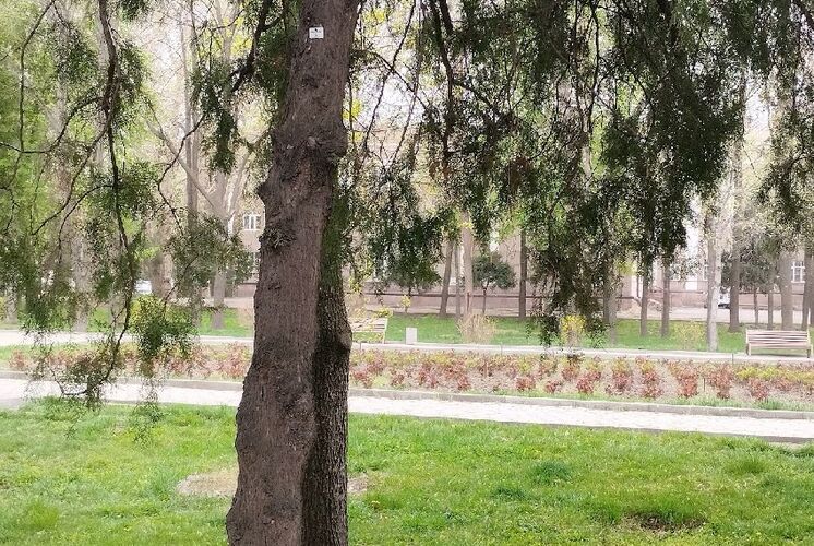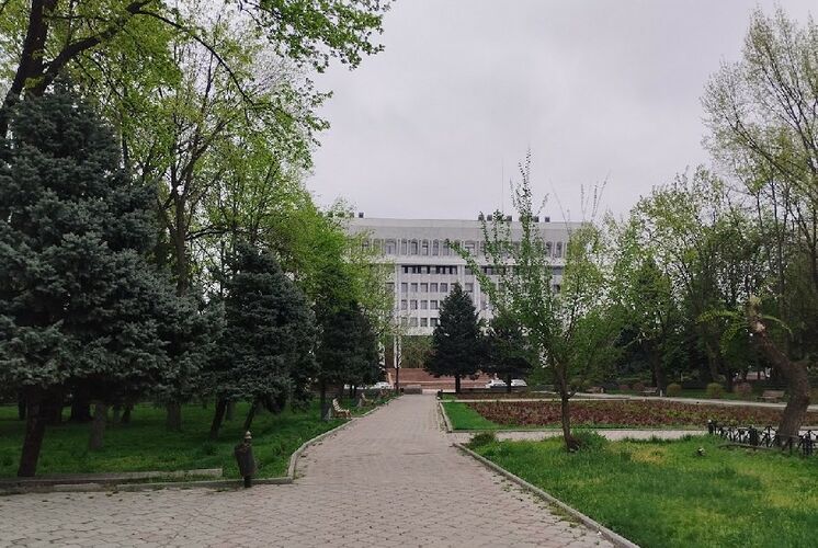 Сначала прогуляемся по центру столицы. Да, здесь еще остались тенистые и прохладные скверы. Например, у "Белого дома". Фотографии в начале апреля сделала Мээрим Акназарова.