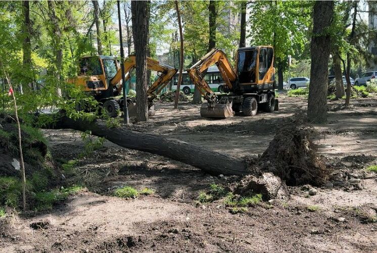 Реконструкция Дубового парка в Бишкеке началась с вырубки деревьев
