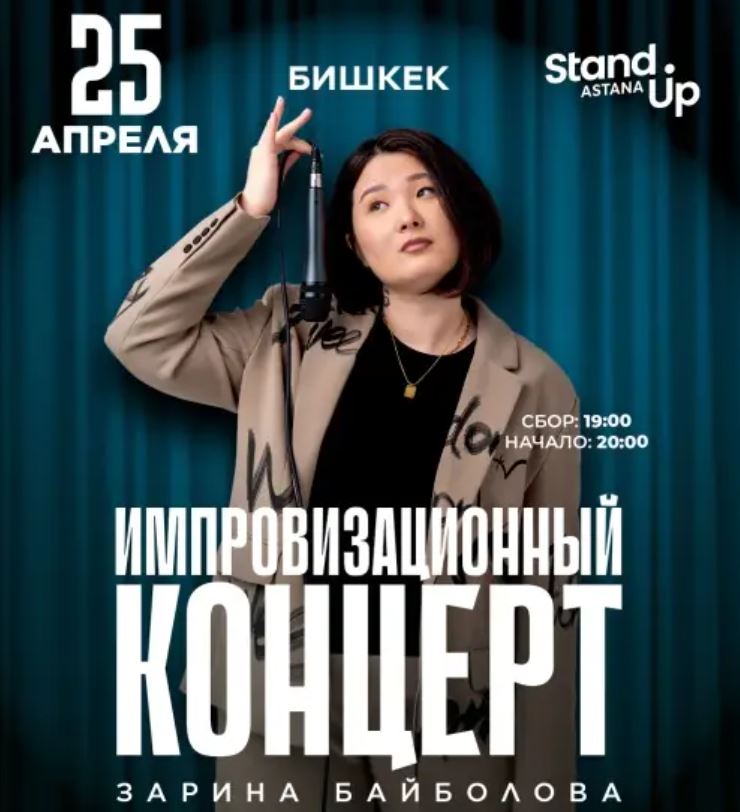 25 апреля. Стендап-концерт Зарины Байболовой В этот вечер все будет рождаться прямо на сцене - только живое общение со зрителями и импровизация.