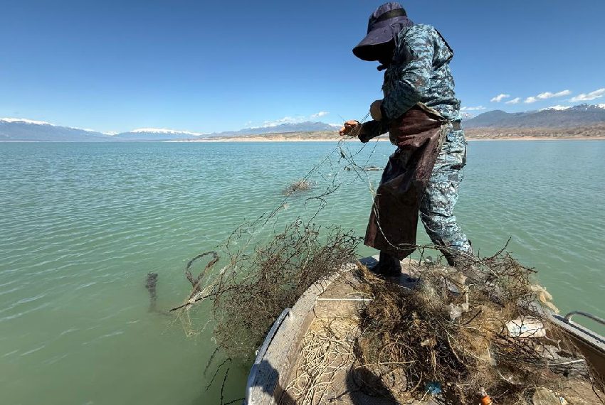 Водолазы извлекли из Иссык-Куля рыболовные сети с погибшими утками