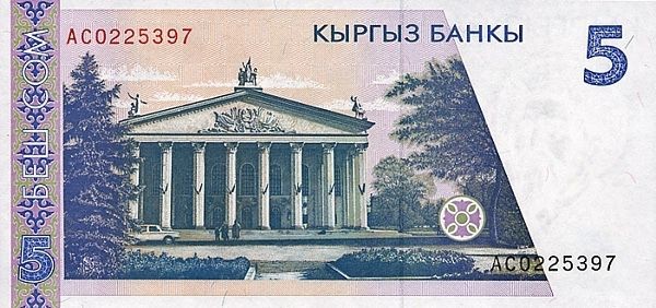 Здание театра на банкноте Кыргызстана, 1994 год:
