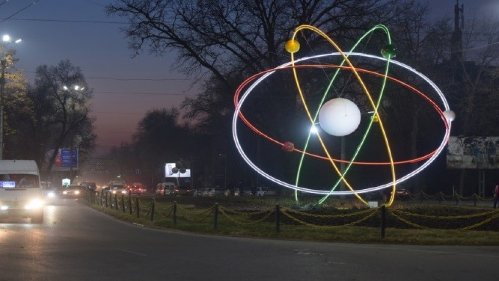 castgal_init('.cast_group_elems_309447'); Конструкцию "Планетарная модель атома" установили в 60-х годах прошлого века в городе Фрунзе. Она стала одним из красивейших и узнаваемых символов столицы. Композиция установлена на проспекте Чуй возле зданий Национальной академии наук и Кыргызского государственного юридического университета. Но в 90-х под воздействием различных факторов пришла в негодность и была демонтирована.