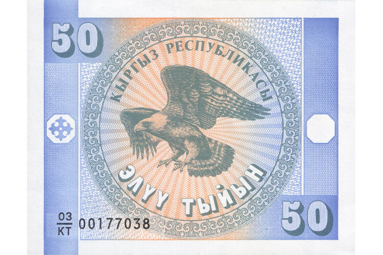 Так называемые банкноты переходного периода изготовили в кратчайшие сроки. Но они имели минимальный комплекс защитных элементов и одинаковые изображения: беркута - для тыйынов, скульптуры Манаса - для сомов и отличались только цветом.