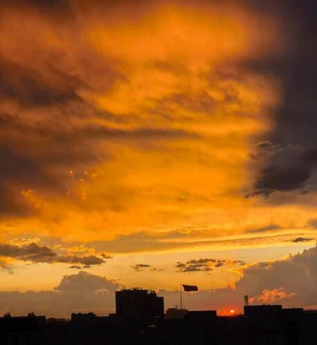 Необычный закат в начале августа в Бишкеке сфотографировала итальянка Синди. "Небесный купол покрылся расплавленным золотом, красный прилив прорвал шелк..." - описала она свои впечатления от увиденного.