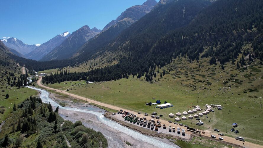 Садыр Жапаров в Иссык-Кульской области официально запустил проект строительства автомобильной дороги Барскоон - Бедел. Об этом сообщили в пресс-службе главы государства. Перед началом церемонии гостям показали видеоролик о проектных особенностях магистрали. Главу государства проинформировали, что дорога пройдет с севера на юг через перевалы Барскоон, Соок, долину Кара-Сай и перевал Ашуу-Суу.
