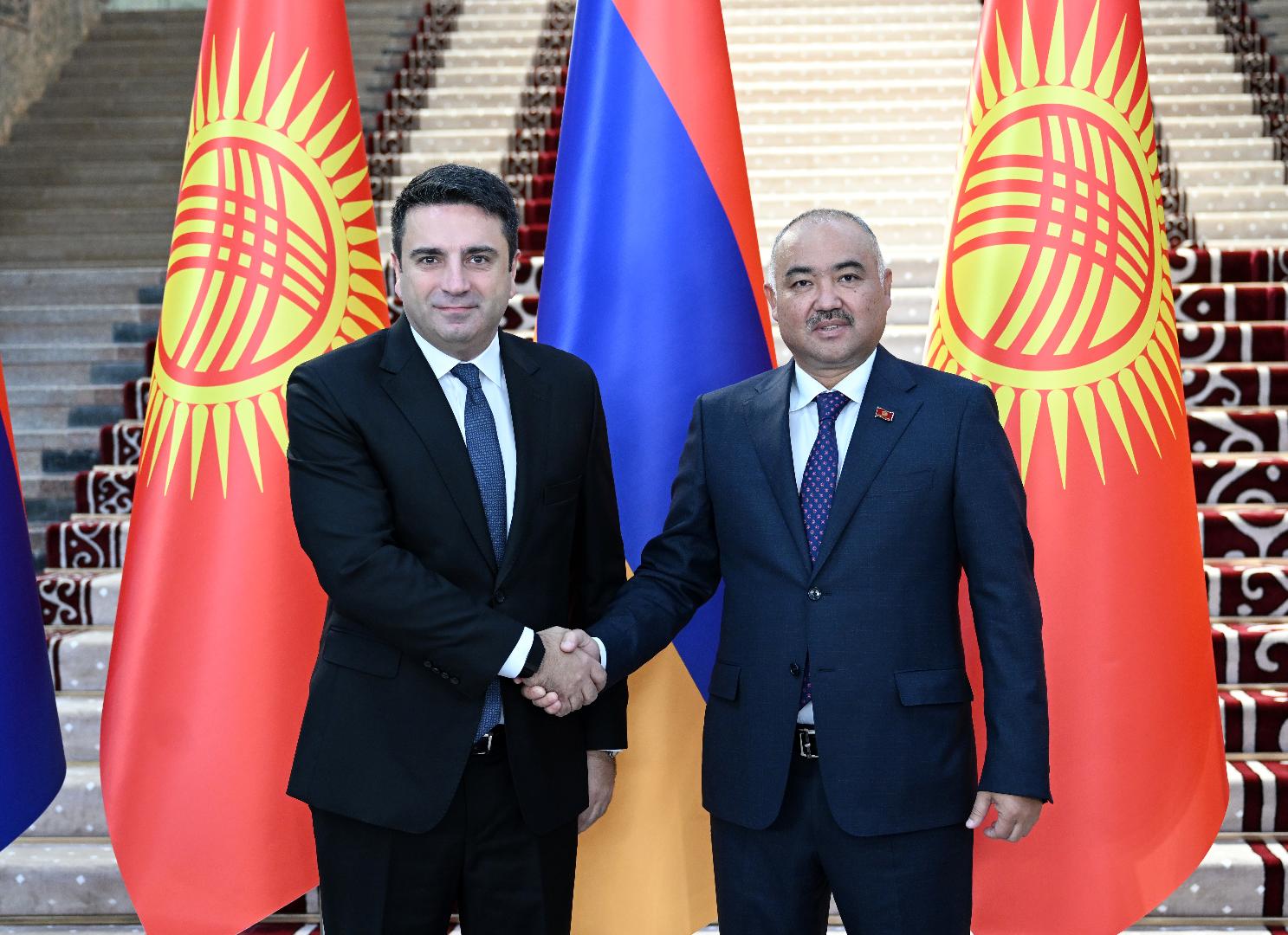 В свою очередь Ален Симонян сказал, что сотрудничество с Кыргызстаном имеет особое значение для Армении. При этом подчеркнув, что в приоритете - развитие межпарламентских отношений. Кроме этого, он отметил, что официальный визит Нурланбека Тургунбек уулу в Армению в мае этого года способствовал расширению парламентского диалога, упомянув о подписанном в ходе визита меморандуме о межпарламентском сотрудничестве между Жогорку Кенешем КР и Национальным собранием Армении.