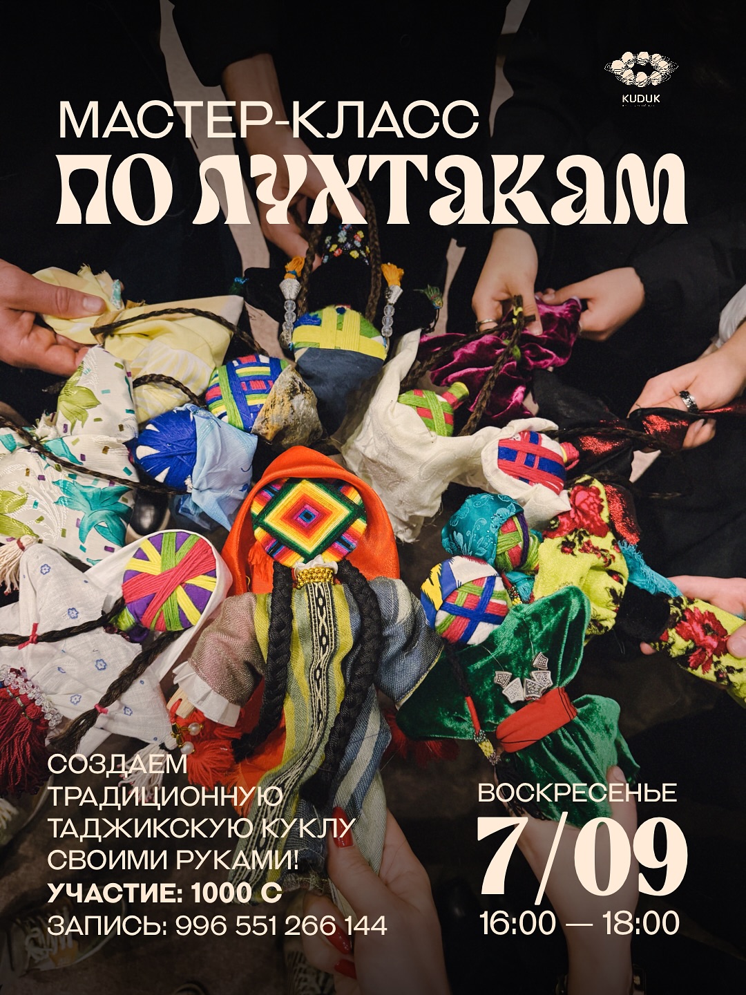 7 сентября. Мастер-класс Участники создадут лухтаки - традиционную таджикскую куклу. Регистрация по телефону 0551266144.