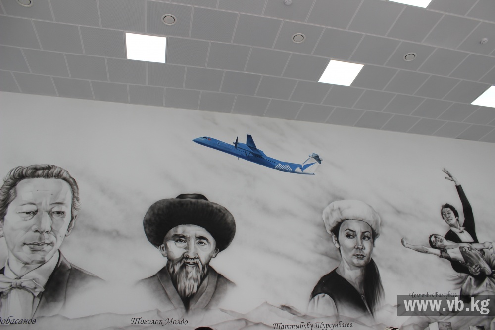 Его стены украшают портреты выдающихся уроженцев Нарынской области: Таттыбубу Турсунбаевой, Чолпонбека Базарбаева, Тоголока Молдо, Калыя Молдобасанова и Жумамудуна Шералиева. Их творчество и вклад давно стали достоянием всего Кыргызстана. Сам аэропорт небольшой, но уютный и современный.