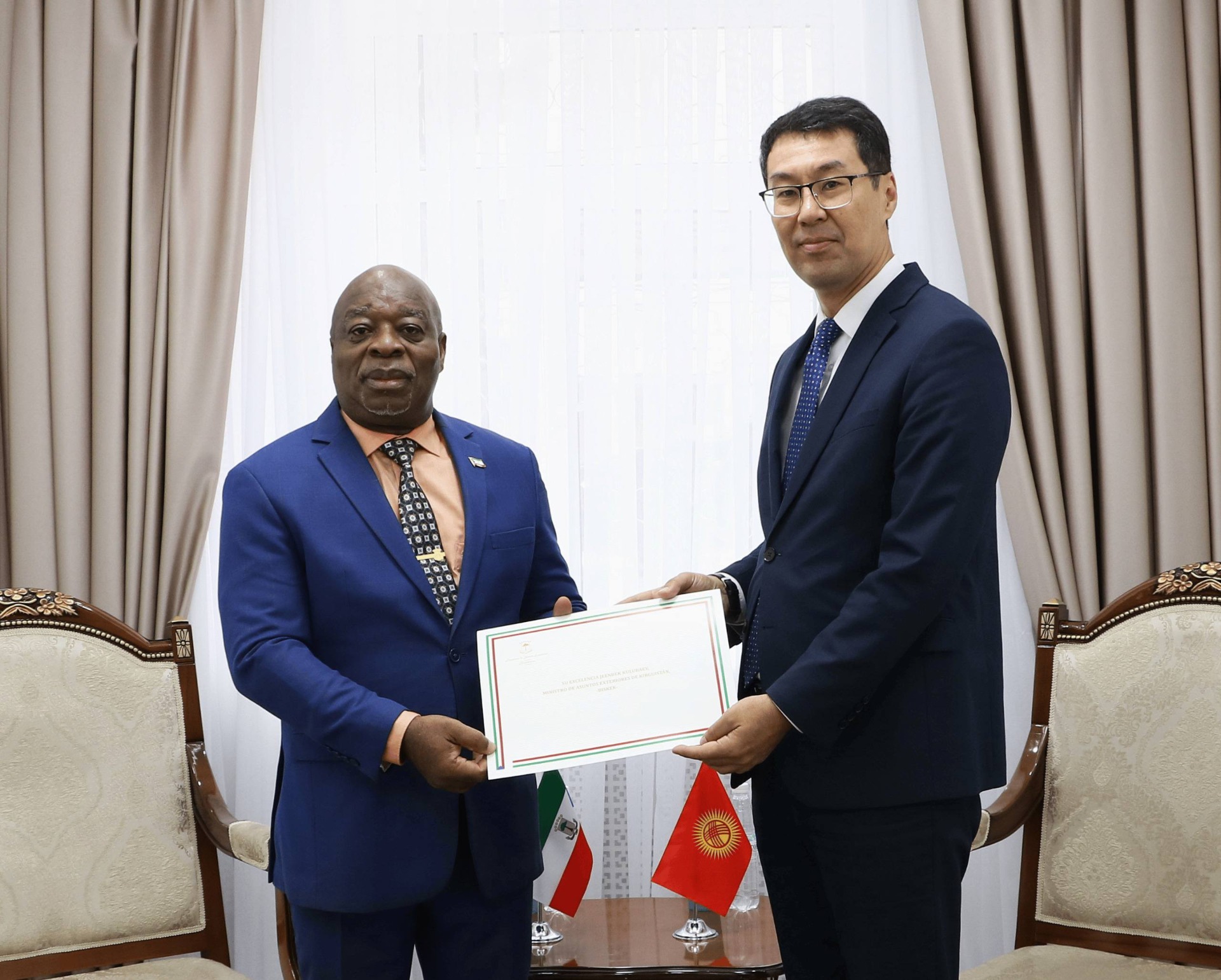 Заместитель министра Медер Абакиров принял копии верительных грамот посла Республики Экваториальная Гвинея Лусиано Нкого Ндонг Айекабы (резиденция расположена в Москве, Россия).