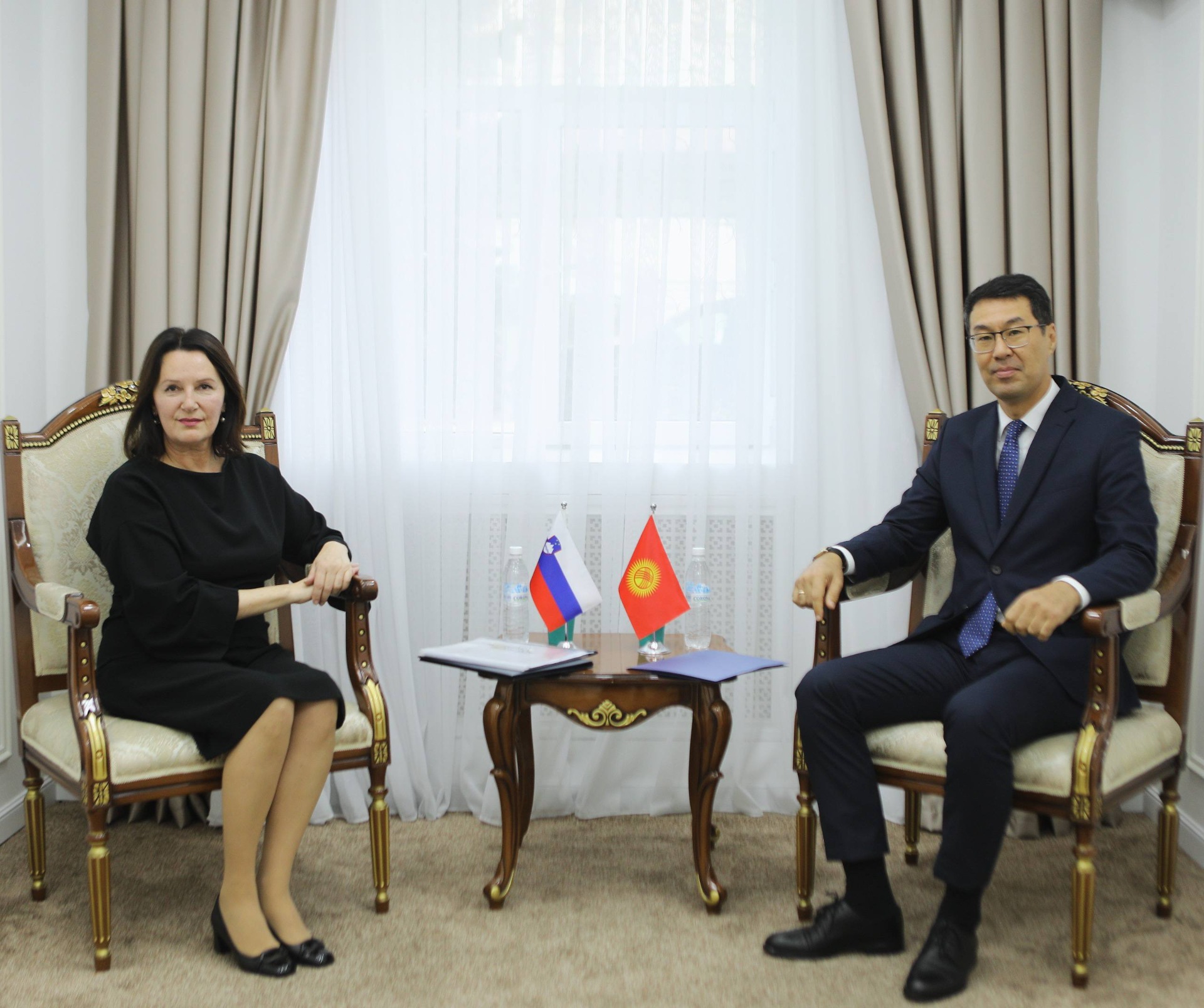 Медер Абакиров также принял копии верительных грамот от посла Словении Аленки Сухадолник (резиденция расположена в Москве, Россия).