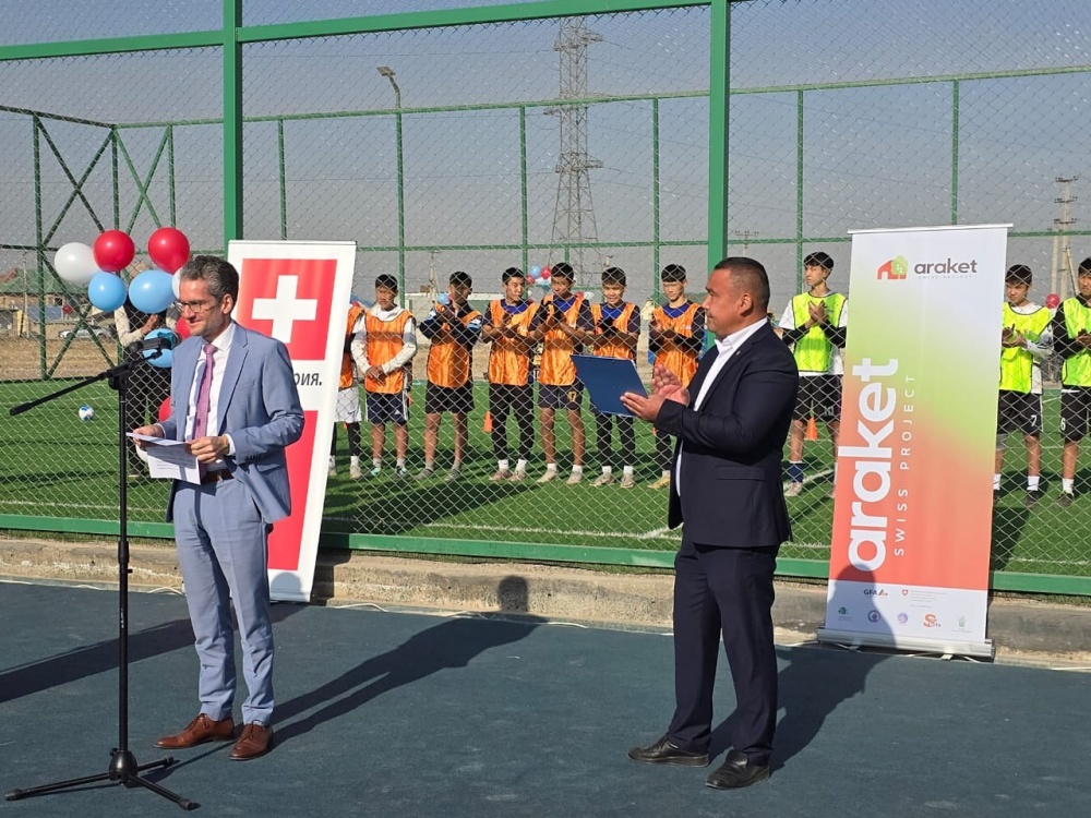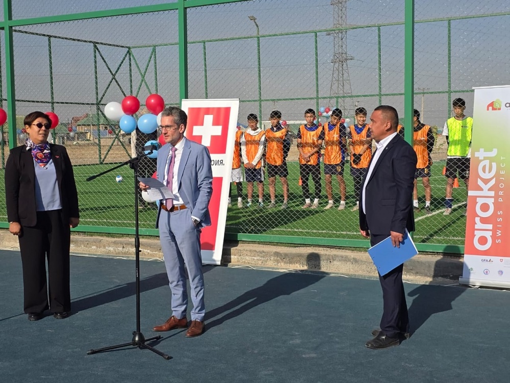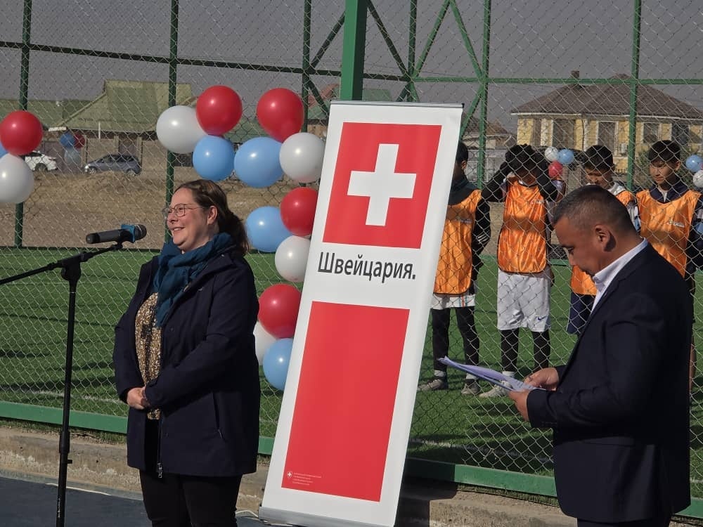 На пересечении улиц Гагарина и Иманалиева в Бишкеке состоялось торжественное открытие новой спортивно-оздоровительной зоны, включающей мини-футбольное поле и спортивную площадку. В мероприятии приняли участие представители мэрии г. Бишкек, Ленинской районной администрации, муниципального территориального управления №109, Посольства Швейцарии, а также жители и представители местных сообществ - вместе они отметили появление нового пространства для активного образа жизни и укрепления связи с сообществом.