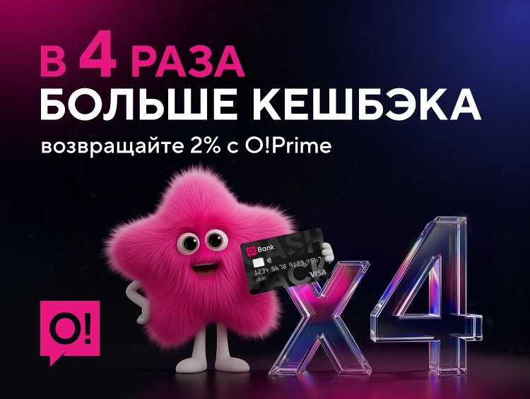Подключите O!Prime БЕСПЛАТНО на 90 дней в приложении "Мой О!" → раздел "Ещё" → O!Prime. Нет карты? Оформите Visa Cashback O!Bank бесплатно за пару минут прямо в приложении или посетите O!Store.