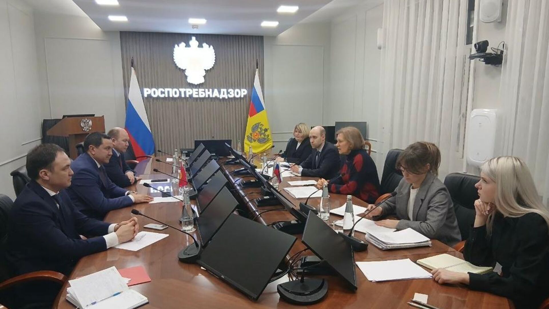 Министр здравоохранения Кыргызстана Каныбек Досмамбетов провел рабочую встречу с руководителем Федеральной службы по надзору в сфере защиты прав потребителей и благополучия человека, главным государственным санитарным врачом России Анной Поповой.