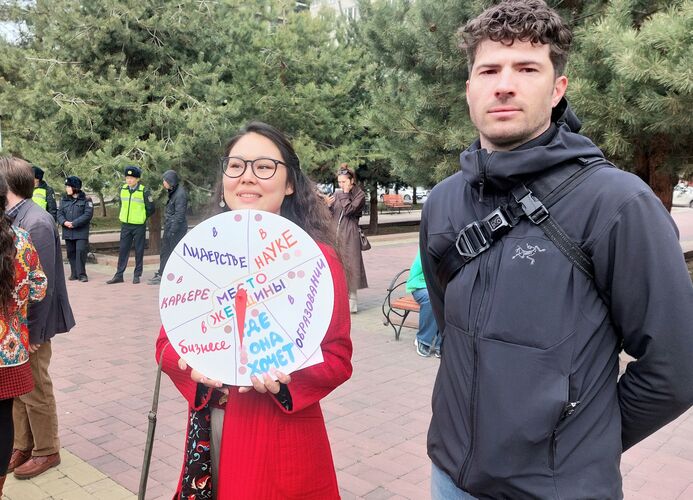 В Бишкеке в Международный женский день около десяти лет традиционно проходит марш за права женщин в Кыргызстане. В этом году власти разрешили провести акцию в сквере имени Максима Горького.