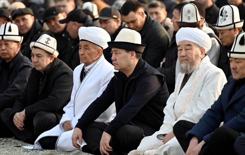 Президент Садыр Жапаров принял участие в праздничном Айт намазе