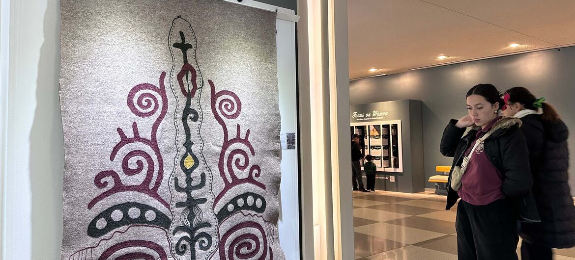 Фото Службы новостей ООН. Экспозиция "Прогулка с Землей" Выставка не только знакомит посетителей с предметами искусства, но и раскрывает философию кочевой культуры, основанную на гибкости и гармонии с природой.